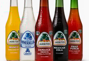 Traditional Mexican sodas made with cane sugar, available in pineapple, orange, or fruit punch flavors.